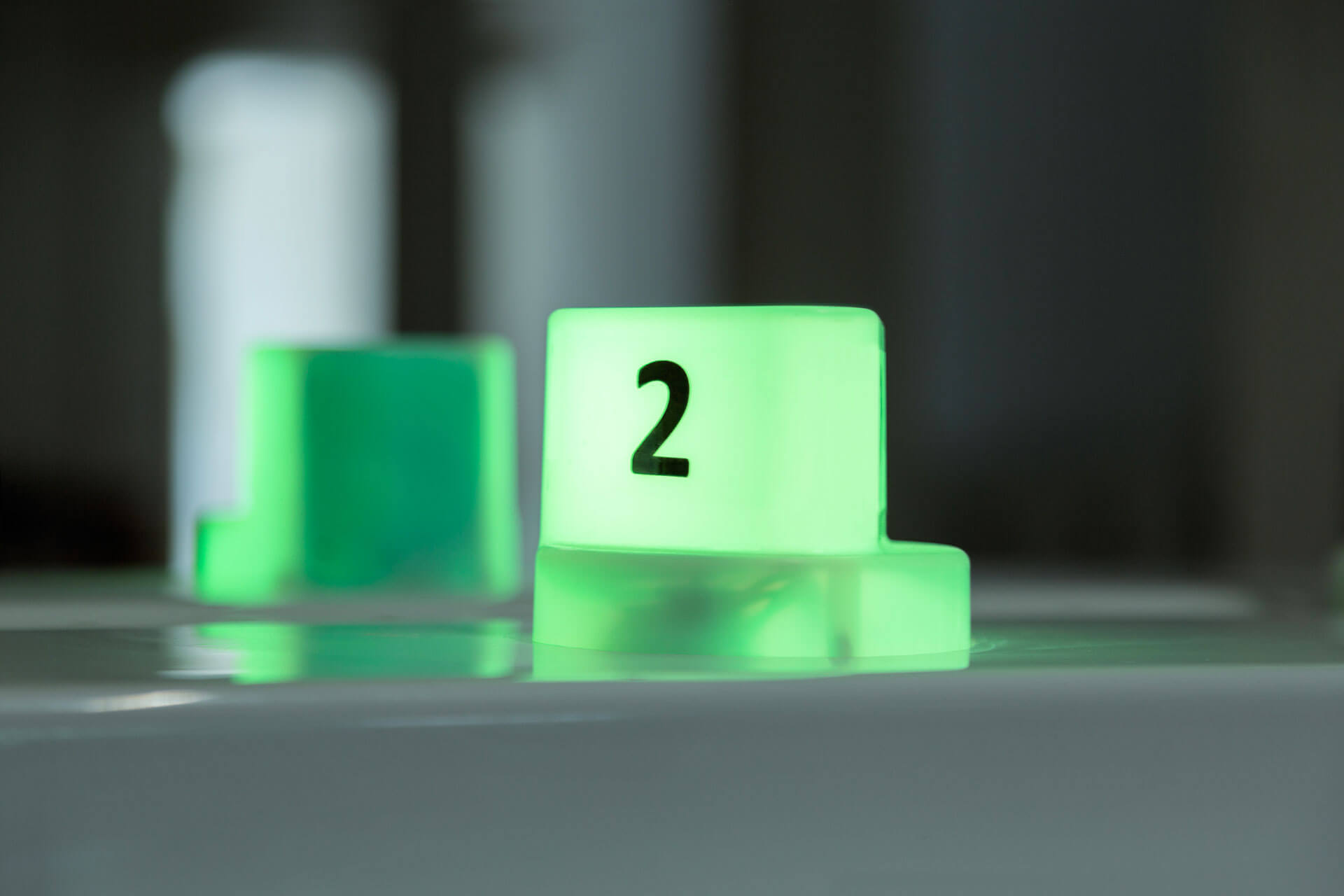 Il quadro di gestione del posto cura è costituito da una scheda a microprocessore con display alfanumerico (16 caratteri per 2 righe area visibile 99×24), una tastiera a membrana con quattro tasti e un comando magnetico per l’abilitazione manuale del tipo e del tempo di cura. Il display mostra lo stato di funzionamento del posto cura e, durante l’esecuzione della terapia, il tempo residuo. Ogni posto cura è collegato ad una scheda LED, alloggiata in un segnalatore numerato, che assume diverse colorazioni in base allo stato di funzionamento del posto cura: libero, prenotato, occupato, lavaggio, sanificazione.